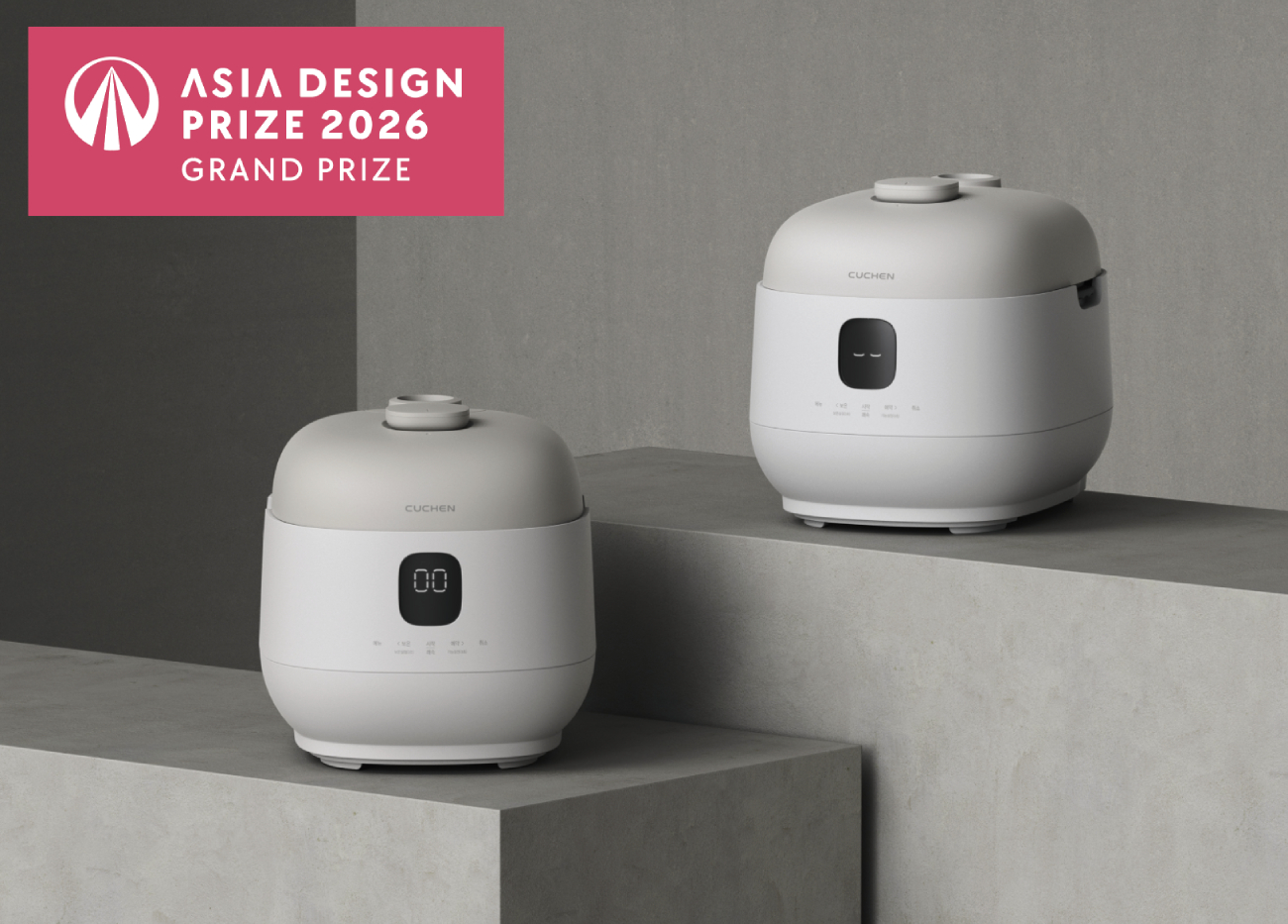 프리미엄 주방가전기업 (주)쿠첸이 '표정 있는 밥솥’ 과 '123 밥솥'으로 '2026 아시아 디자인 프라이즈'에서 대상(Grand Prize) 및 본상(Gold Winner)을 동시에 석권하며 2관왕의 영예를 안았다고 29일 밝혔다.